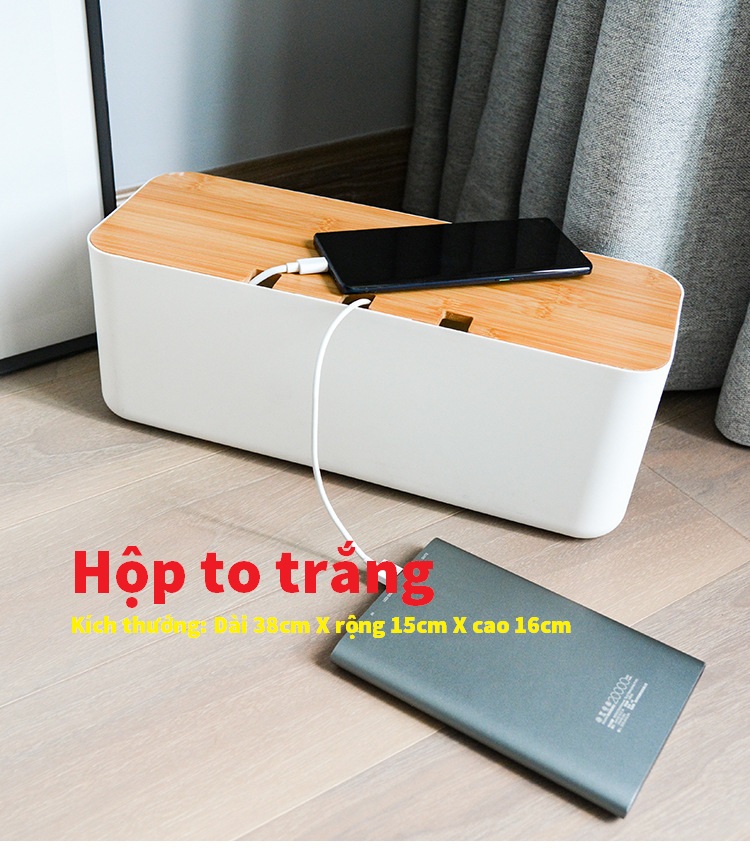 Hộp Đựng Ổ Điện, Cáp Sạc Nhựa ABS + Nắp Gỗ Tiện Lợi Chống Cháy Nổ
