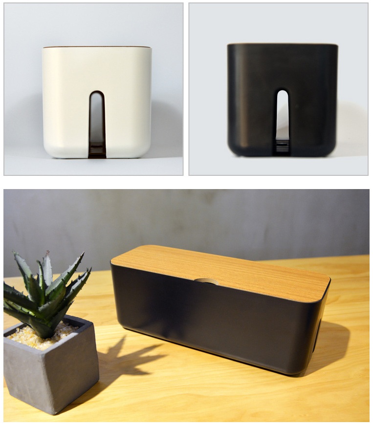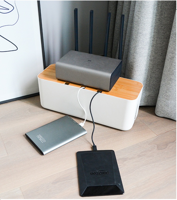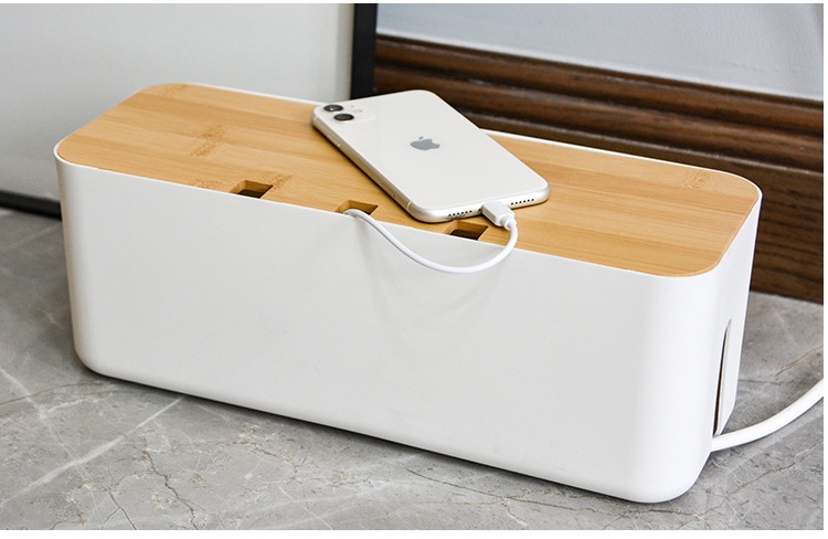 🔌Hộp Đựng Ổ Điện, Cáp Sạc Nhựa ABS + Nắp Gỗ Tiện Lợi Chống Cháy Nổ